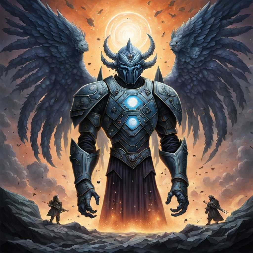 Cosmic Mannerist Suspense oil battle monster versus angel Whelan tessillations