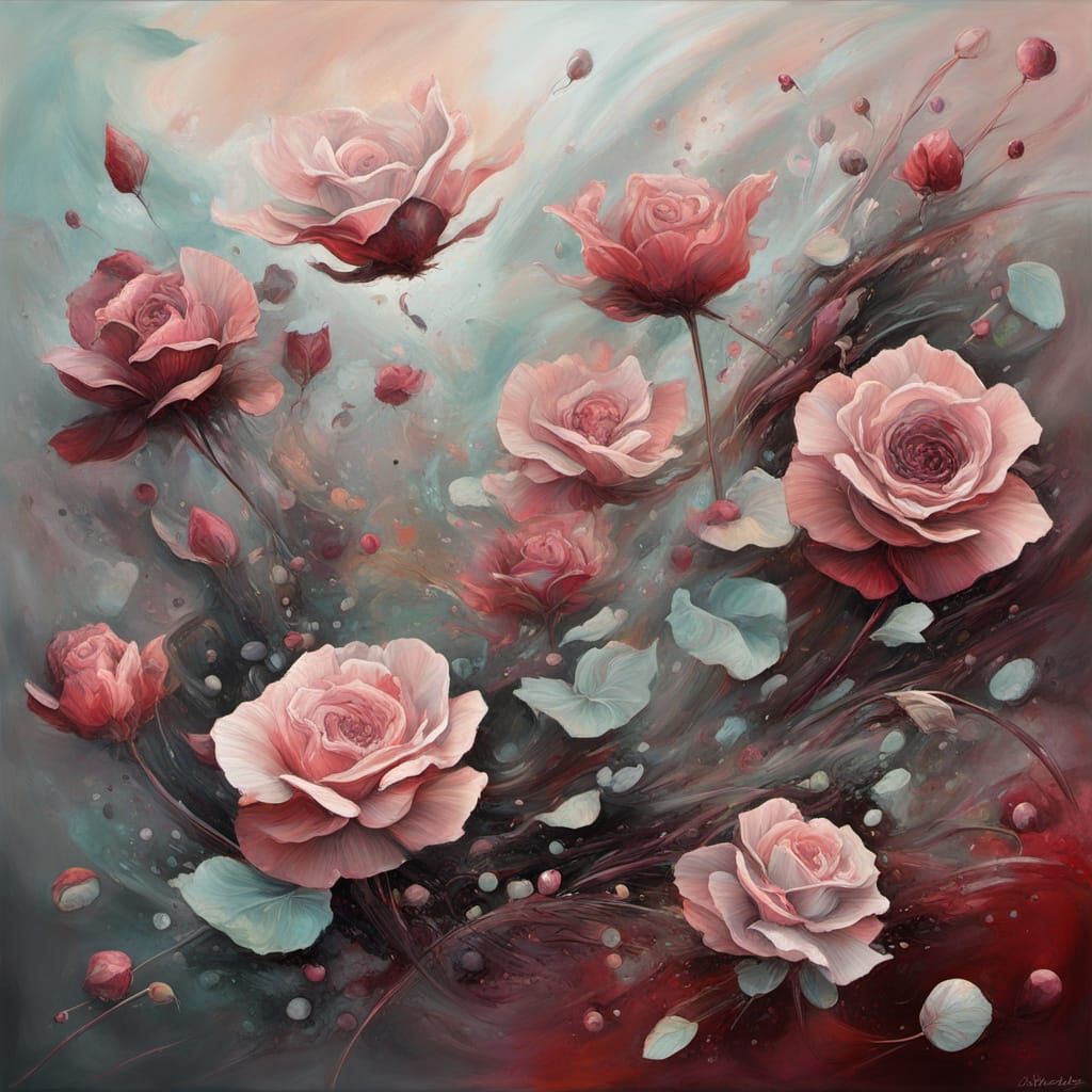 This image showcases a surreal, abstract cloud burst with a cyberpunk aesthetic, featuring a vibrant palette of cardinal pink, brandy rose, and green pea.