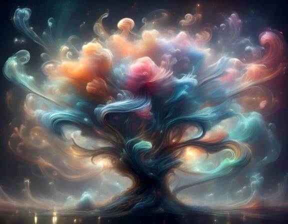 This image showcases an ethereal, dreamlike scene with opalescent qualities, rendered in a soft, magical artistic style.