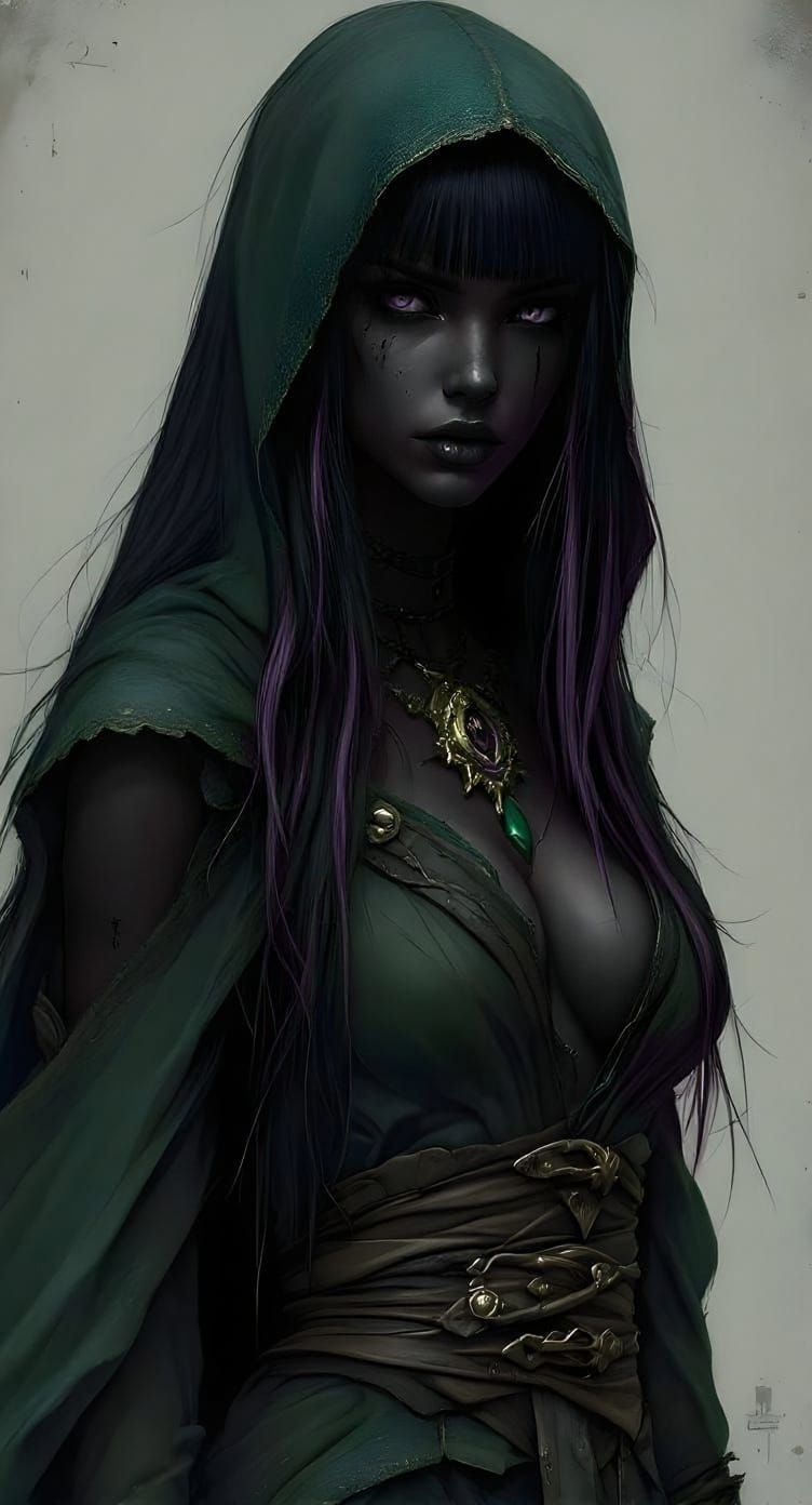 This is Mithienye reimagined as would of been depicted in the 1990's, as WOTC no longer portray their Drow this dark skinned.
