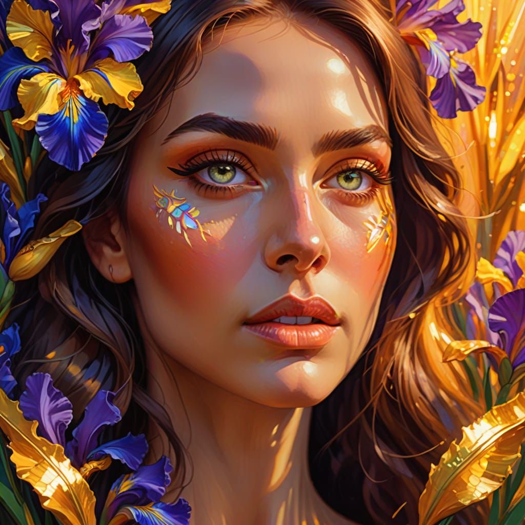 A digital portrait of a woman with glowing eyes. The vibrant colors and soft lighting create a dreamy, ethereal effect in a fauvist style.