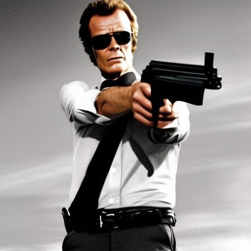This image portrays a cinematic scene reminiscent of a classic action film. It captures a character exuding toughness and resolve, ready for confrontation.