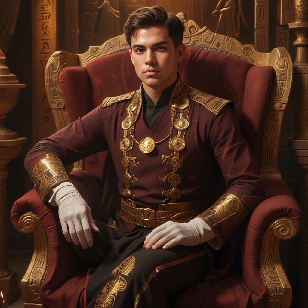 This image shows a young mage casting a spell in an ancient Egyptian temple. The digital painting features golden light, hieroglyphics, a mystical glow, and vibrant colors. It has a magical realism aesthetic.