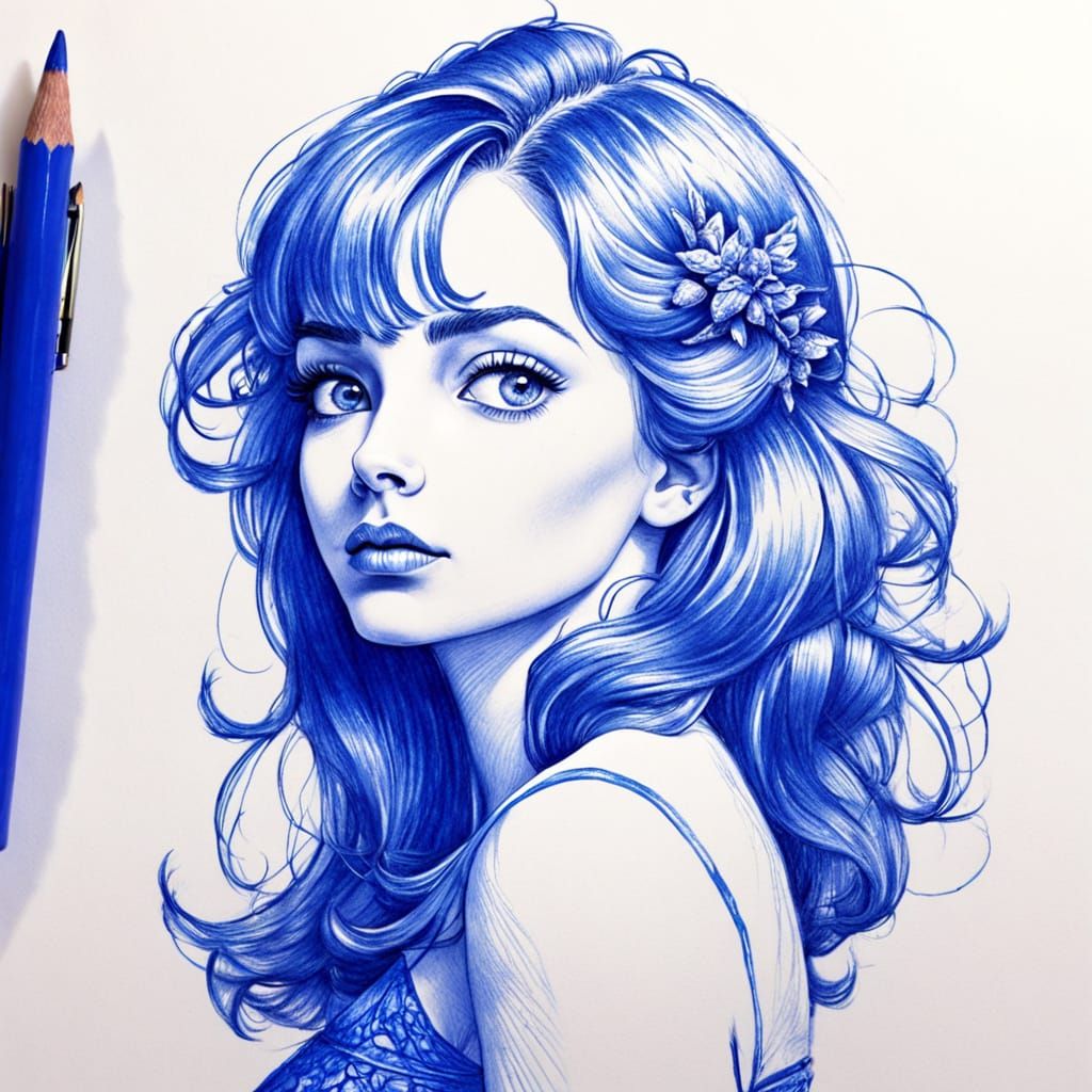Make your own amazing blue biro art with our free AI image generator. It's easy and fun!