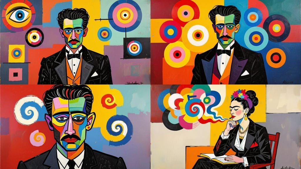 This abstract art piece showcases a brilliant mind in a kaleidoscope of vibrant colors, as if brought to life on an acrylic canvas.