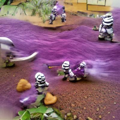 A dynamic scene of 501st clone troopers engaged in intense combat on an exotic purple planet. Blaster fire streaks through the air, highlighting the gritty atmosphere.