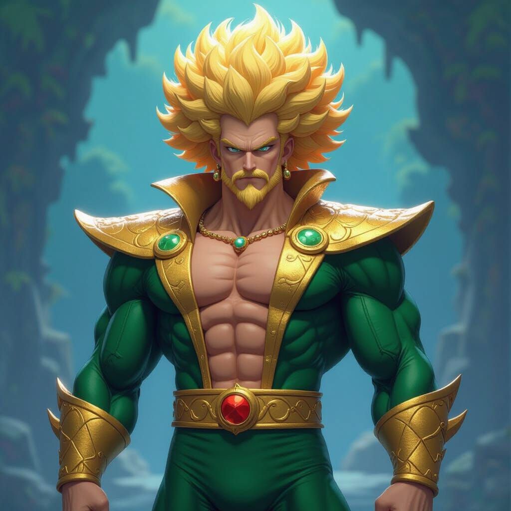 Create your own hilarious images of Mr. Satan cosplaying as Aquaman with a golden mullet. It's free and easy!