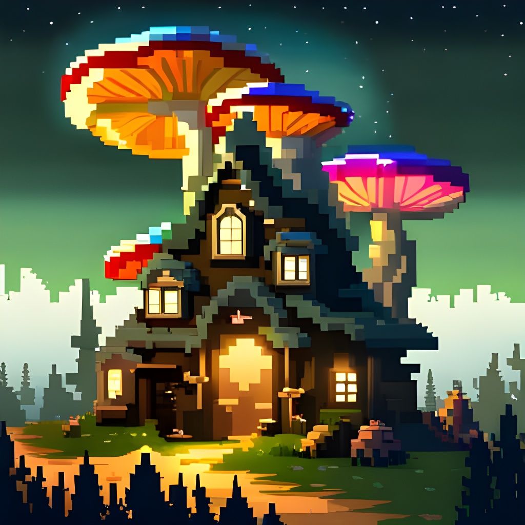 8 bit pixel art "Fairytale rainbow enchanted forest, intricate magic giant mushrooms, fairy_houses, fireflies, glowing!!" breathtaking pixel art fantasycore by Paul Robertson, eboy , Pixel Jeff, bugpixel, maximalist highly detailed and intricate professional photography, masterpiece, 8k resolution concept ...