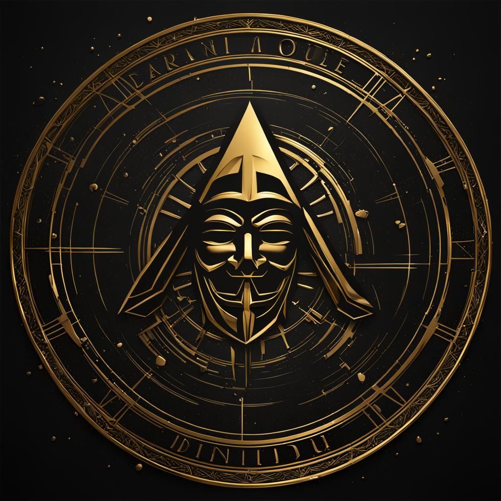 A minimalist vector graphic of the Anonymous logo with the word "DARKSIDE" in gold. The logo is centered on a black background, rendered as detailed matte painting.