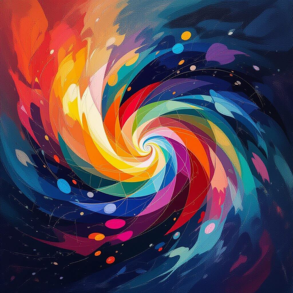 This image showcases a vibrant, abstract digital artwork featuring swirling lines and chaotic colors, evoking a sense of movement and expression in a luminous gradient palette.