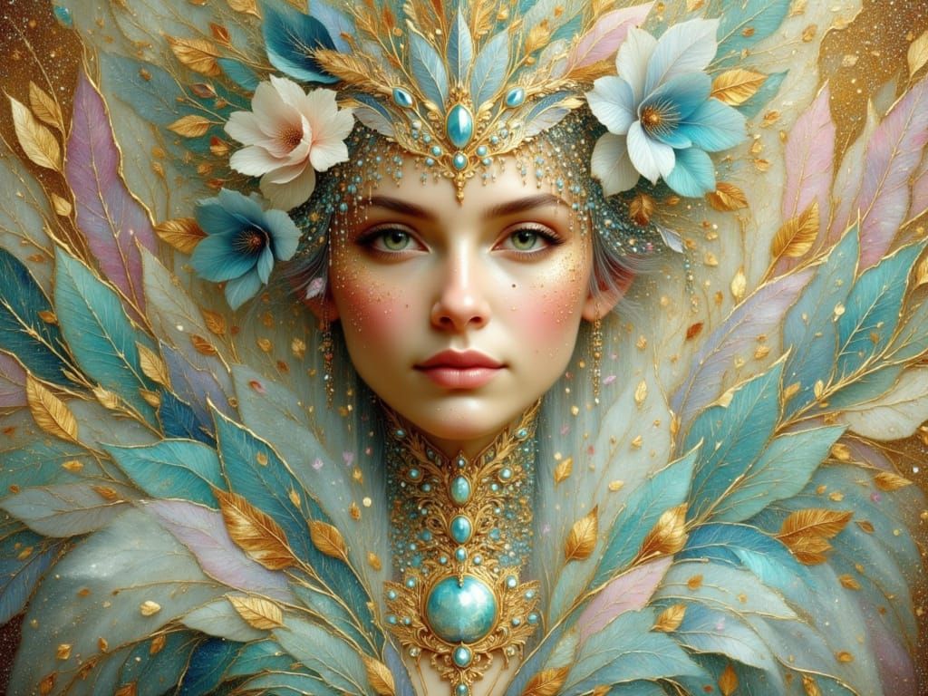 Ethereal Skeleton Woman in Art Nouveau Garden