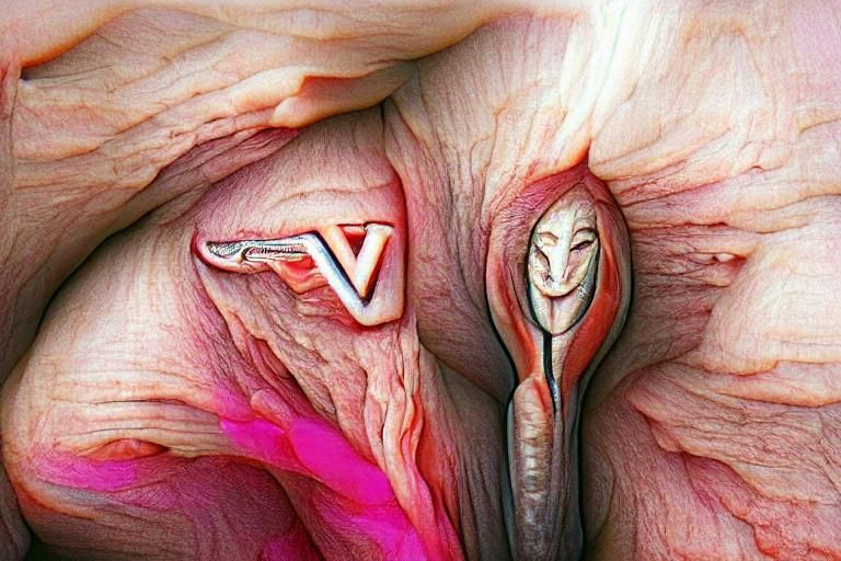 This image shows a graphic illustration of a vulva. The image is a simple representation of female anatomy.