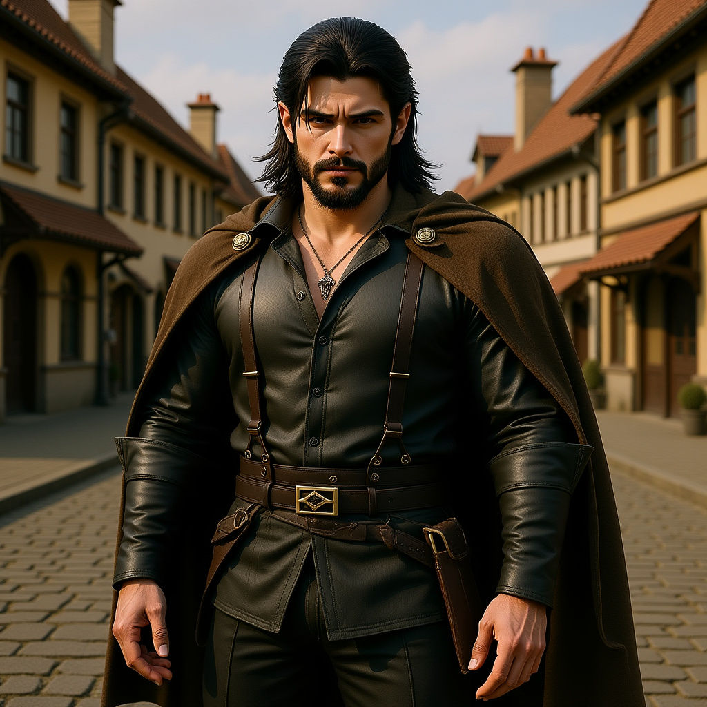 This image shows a detailed 3D anime-style rendering of a lean, muscular male vampire with long hair and a serious expression. The aesthetic is highly detailed, inspired by concept art and trending styles.