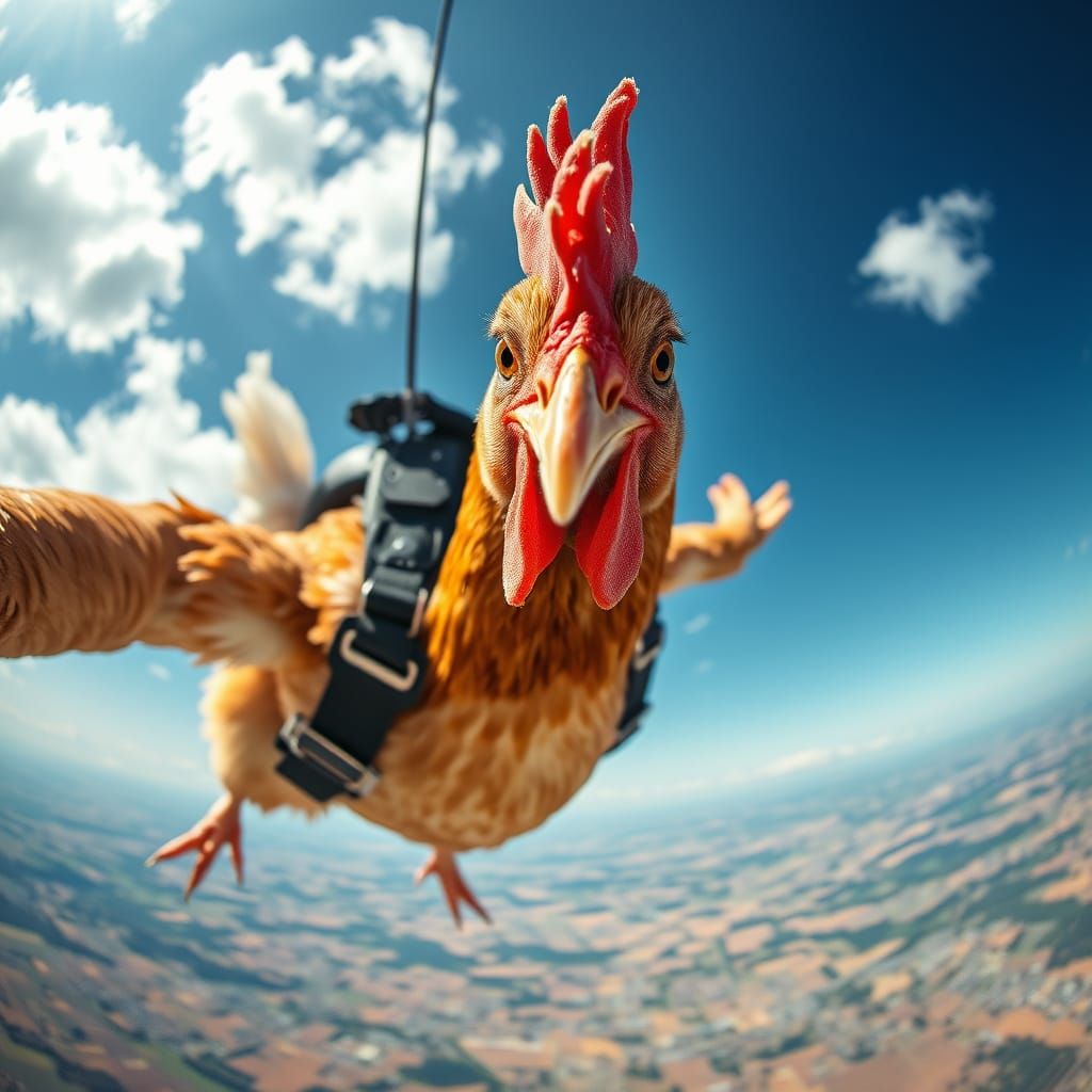 Make hilarious images of chickens in mid-air with our free and easy AI image generator