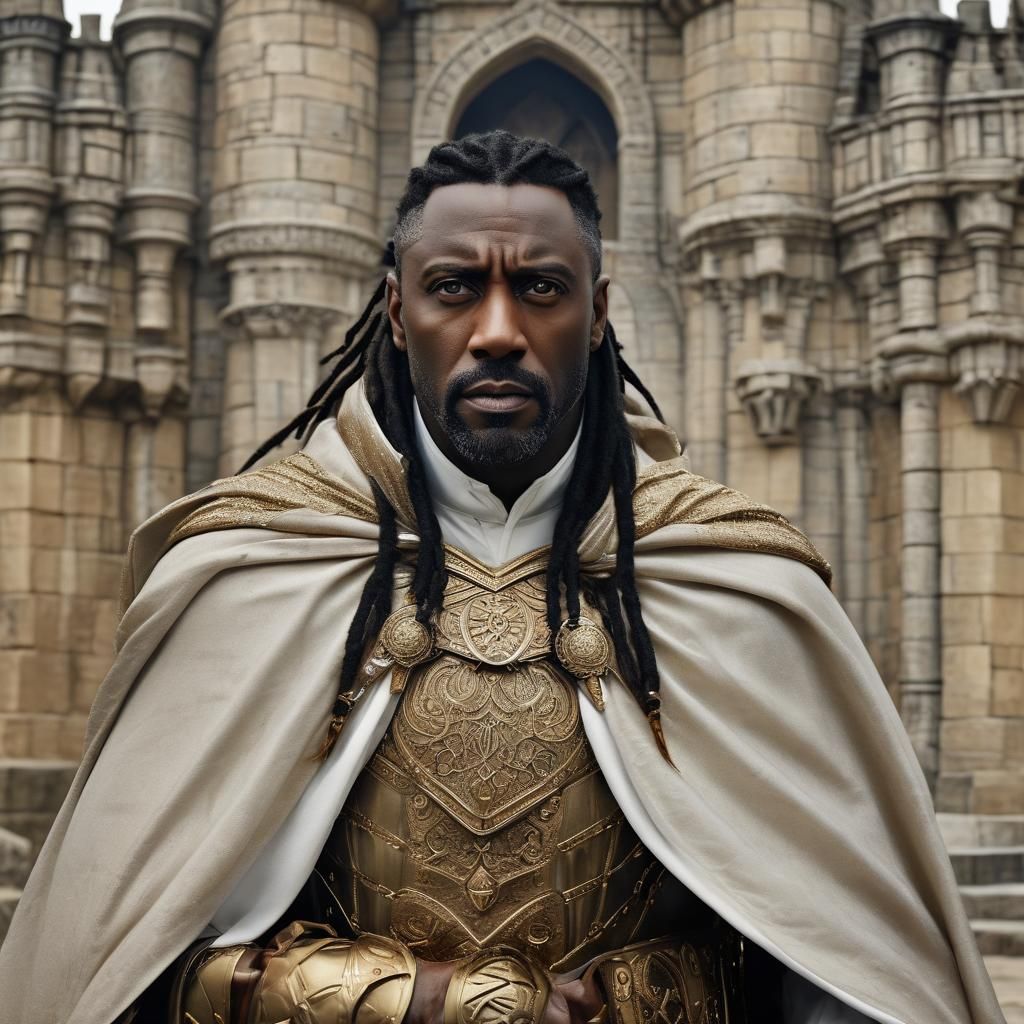 Easily generate custom fantasy portraits like Idris Elba in golden armor with our free AI image generator