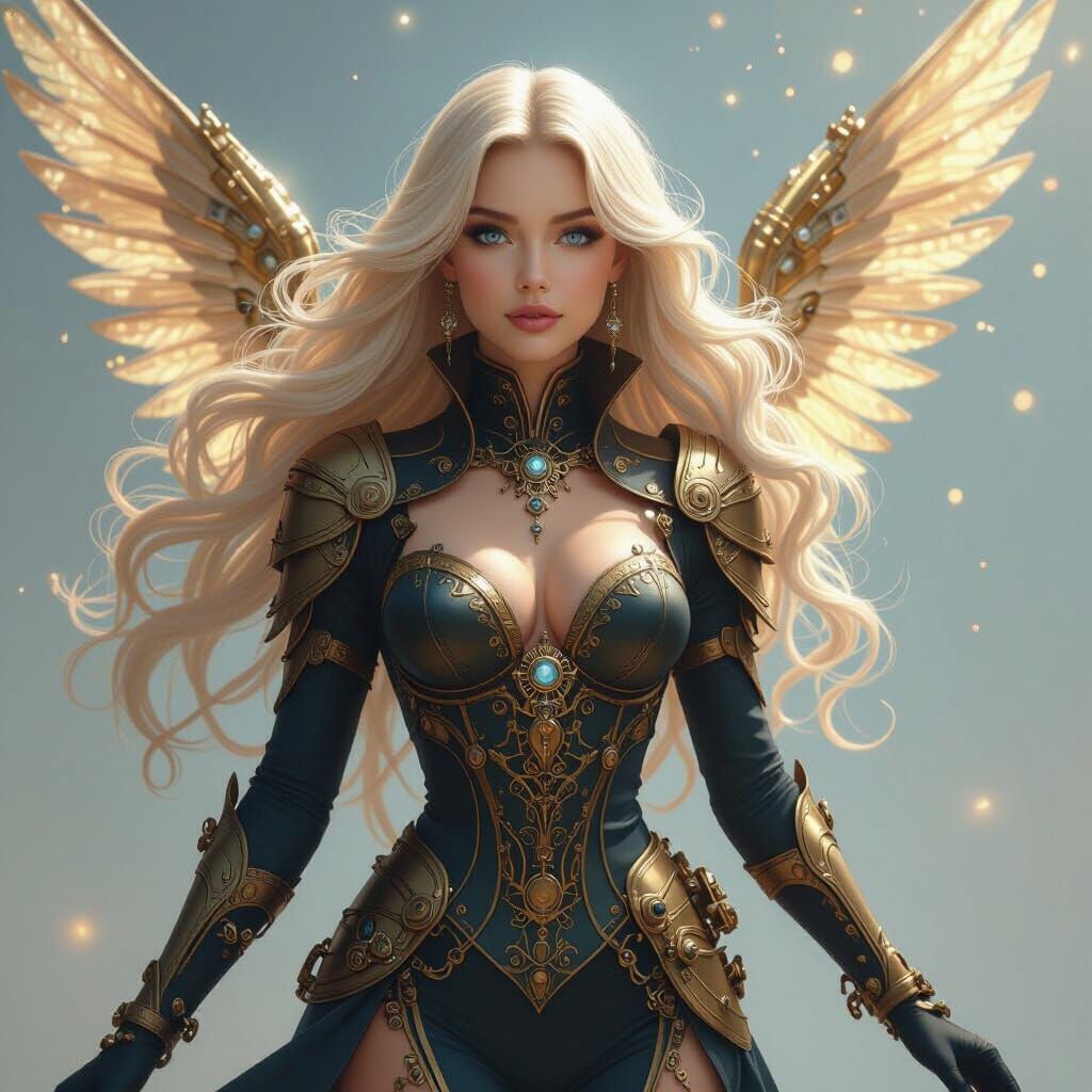 Generate your own beautiful steampunk angel images with flowing hair and gold clothes for free. Easy and fun!