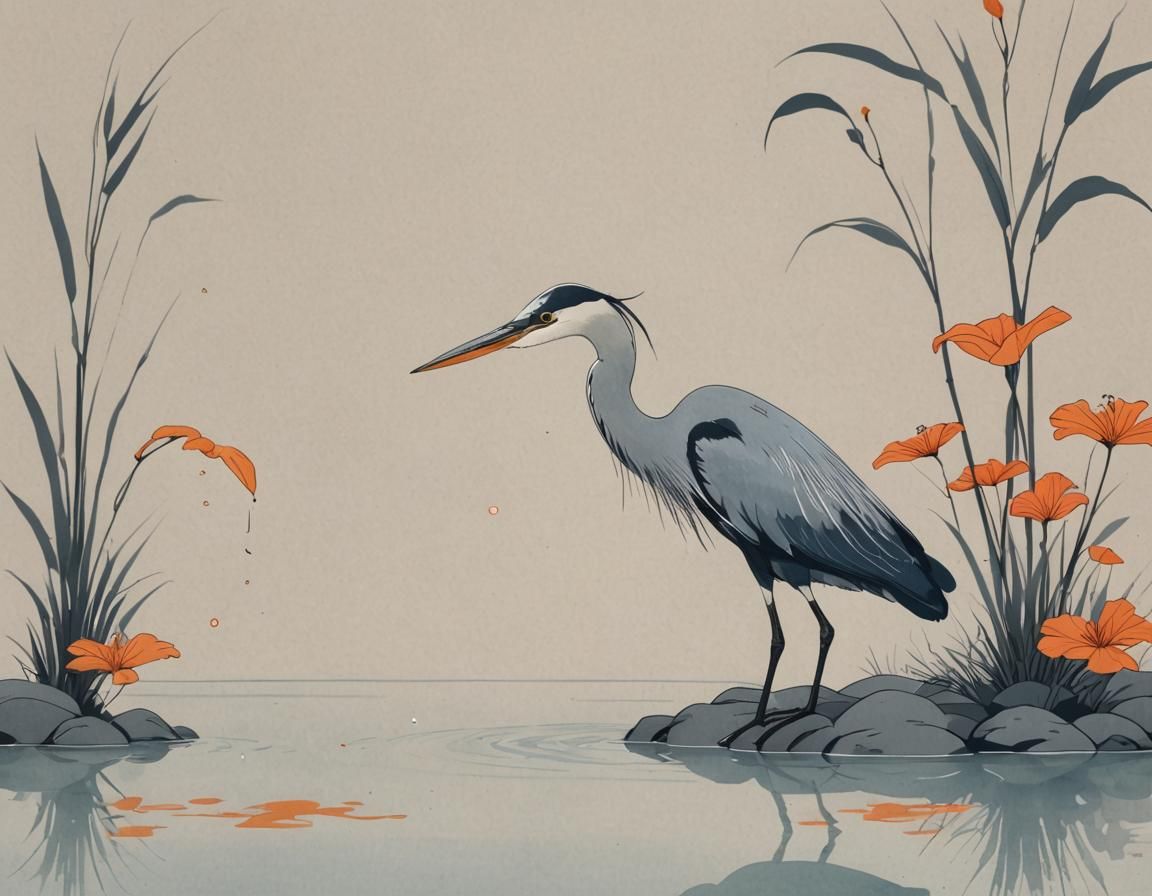 Make your own minimalist drawings of herons, koi, and other wildlife with our free AI image generator.