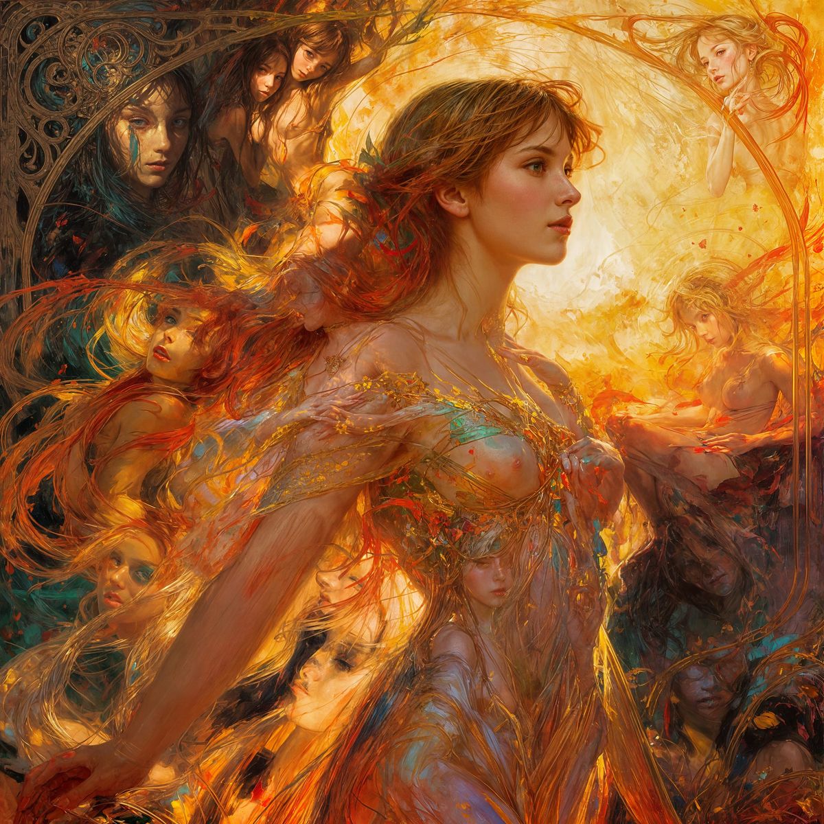 This AI-generated masterpiece showcases a vibrant, painterly fantasy landscape with a beautiful, colorful aesthetic, evoking the styles of WLOP and Mucha.