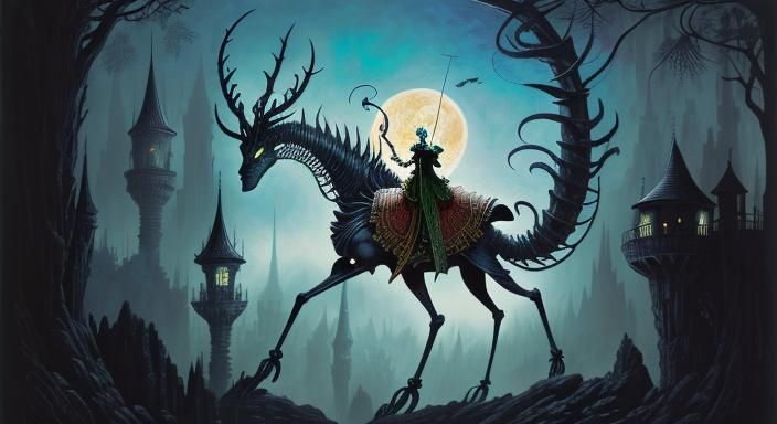 Make unique monster images inspired by distinctive styles, like Louis Royo. Free and easy AI image generation.