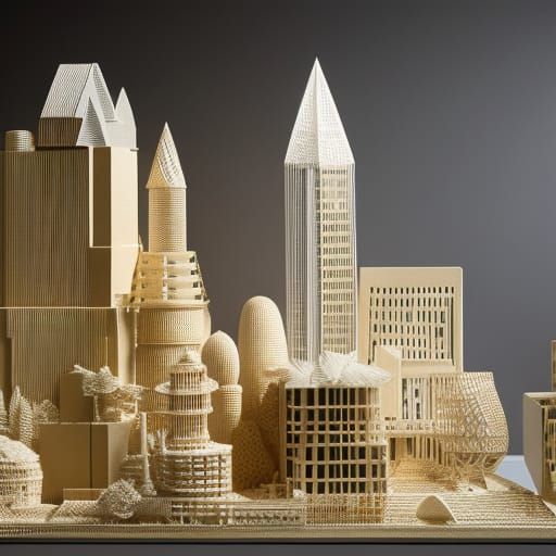 A hyperdetailed cardboard sculpture with intricate detailing and complex lighting. The sculpture, reminiscent of Greg Olynik's style, is captured in a professional photograph with a shallow depth of field.