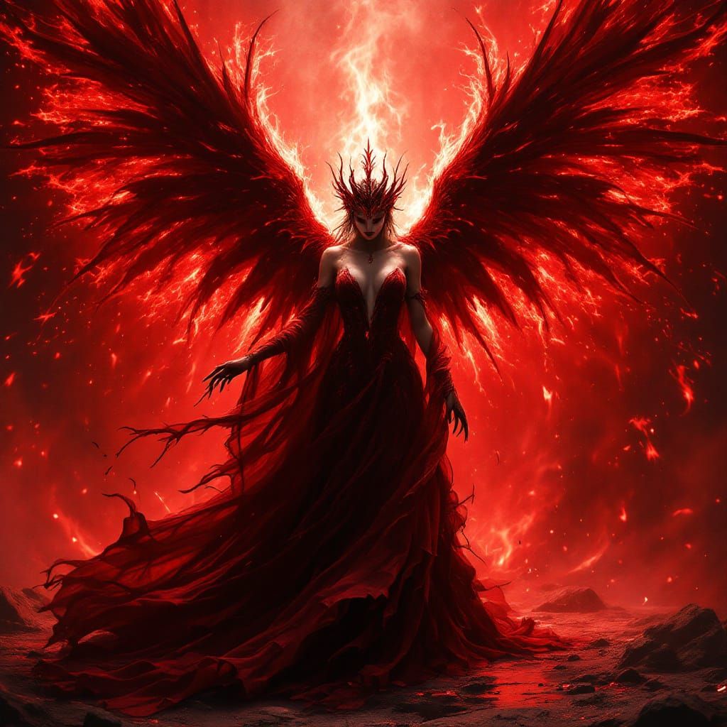 Generate your own unique angry fairy pictures with fire wings and torn dresses. Free and easy AI image creation.