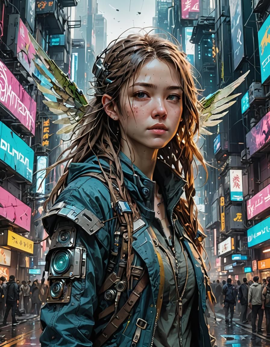 A young Valkyrie girl walking the lonely city streets after leaving Asgard