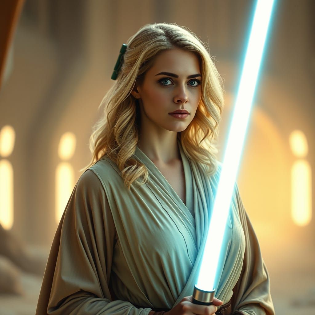 Create your own blonde Jedi images in a Star Wars setting. Free and easy to use AI image generator.