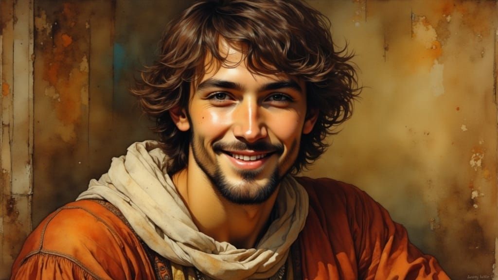 A portrait of a Renaissance man lost in thought, set against a warm, golden Italian countryside backdrop, with intricate details and sfumato, reminiscent of Léonard de Vinci's style and the subtle smile of the Mona Lisa
