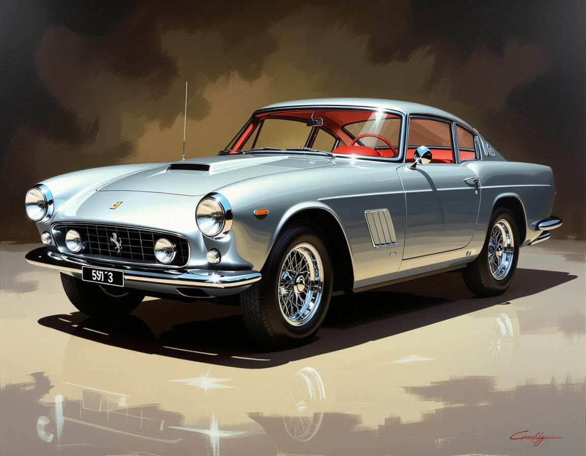 Easily generate stunning vintage car images with our free AI tool. Get creative with classic models like the Ferrari 250 GT.