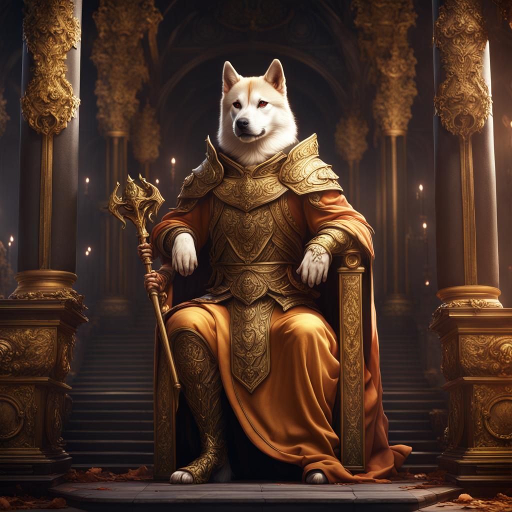 A detailed matte painting of the god of doge. Fantastical elements and intricate details are rendered in deep, complementary colors, creating a striking fantasy concept art in 8k resolution.