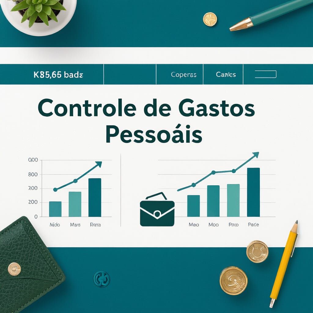This clean and organized spreadsheet cover for personal expense tracking features a central title with subtle blue and green financial graphics. Minimalist design with a wallet icon.