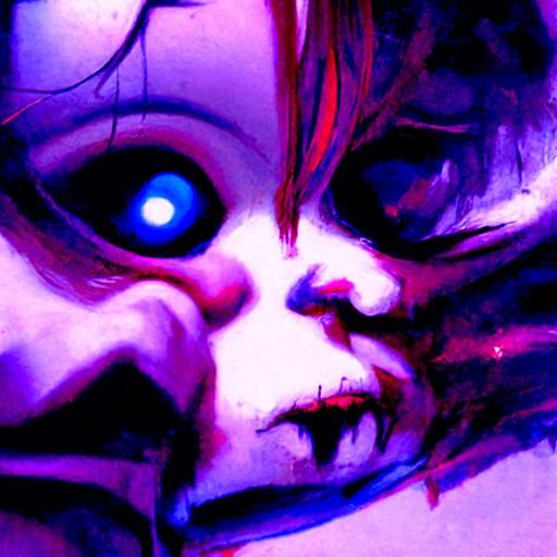 A sinister image of Chucky, the evil doll. The picture evokes a dark and unsettling mood, reminiscent of dramatic, detailed fantasy art.