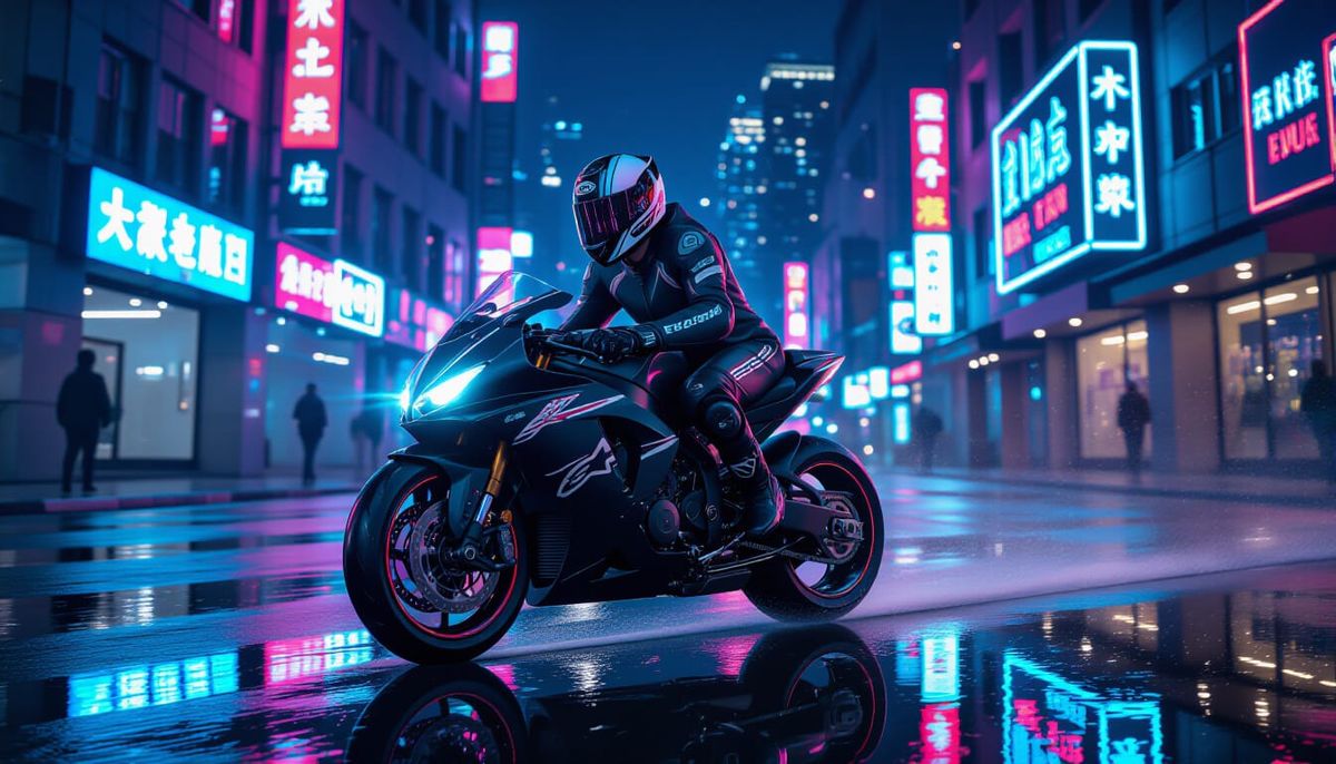 Create your own neon-lit motorcycle scenes with our free AI image generator. It's easy and flexible!