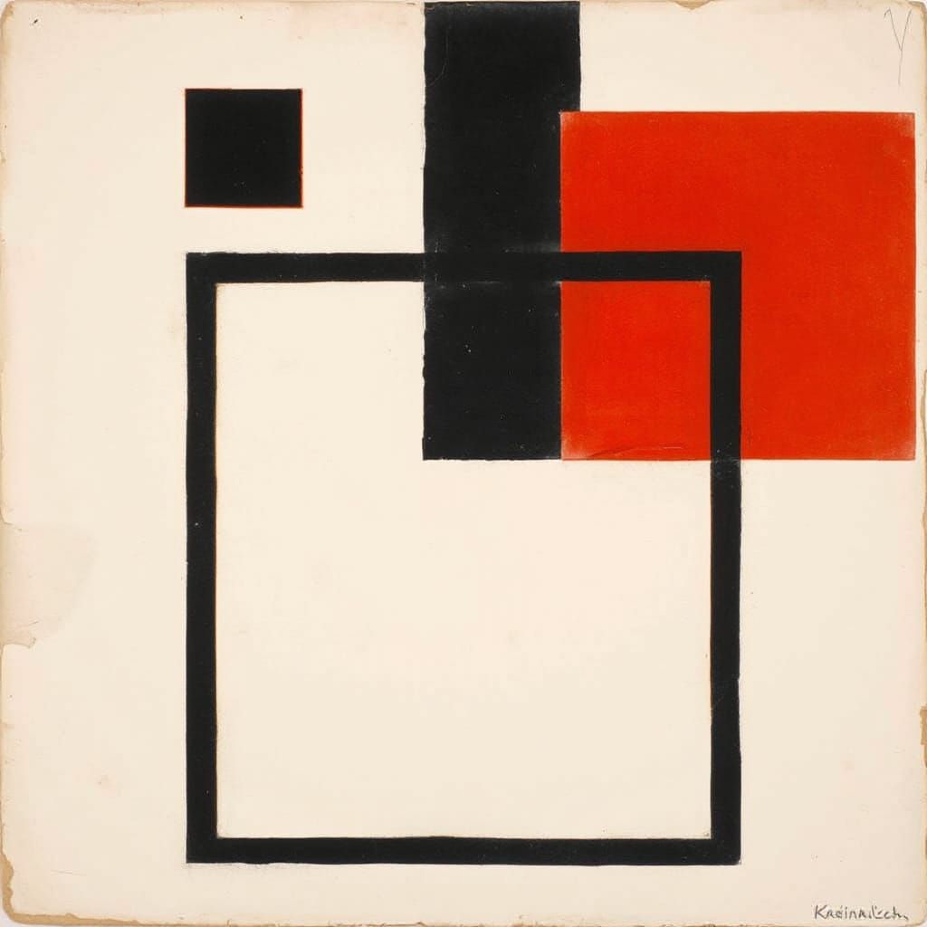 This image depicts a minimalist abstract art piece in a bold, monochromatic style, characteristic of the Suprematist movement, challenging traditional notions of art and narrative.