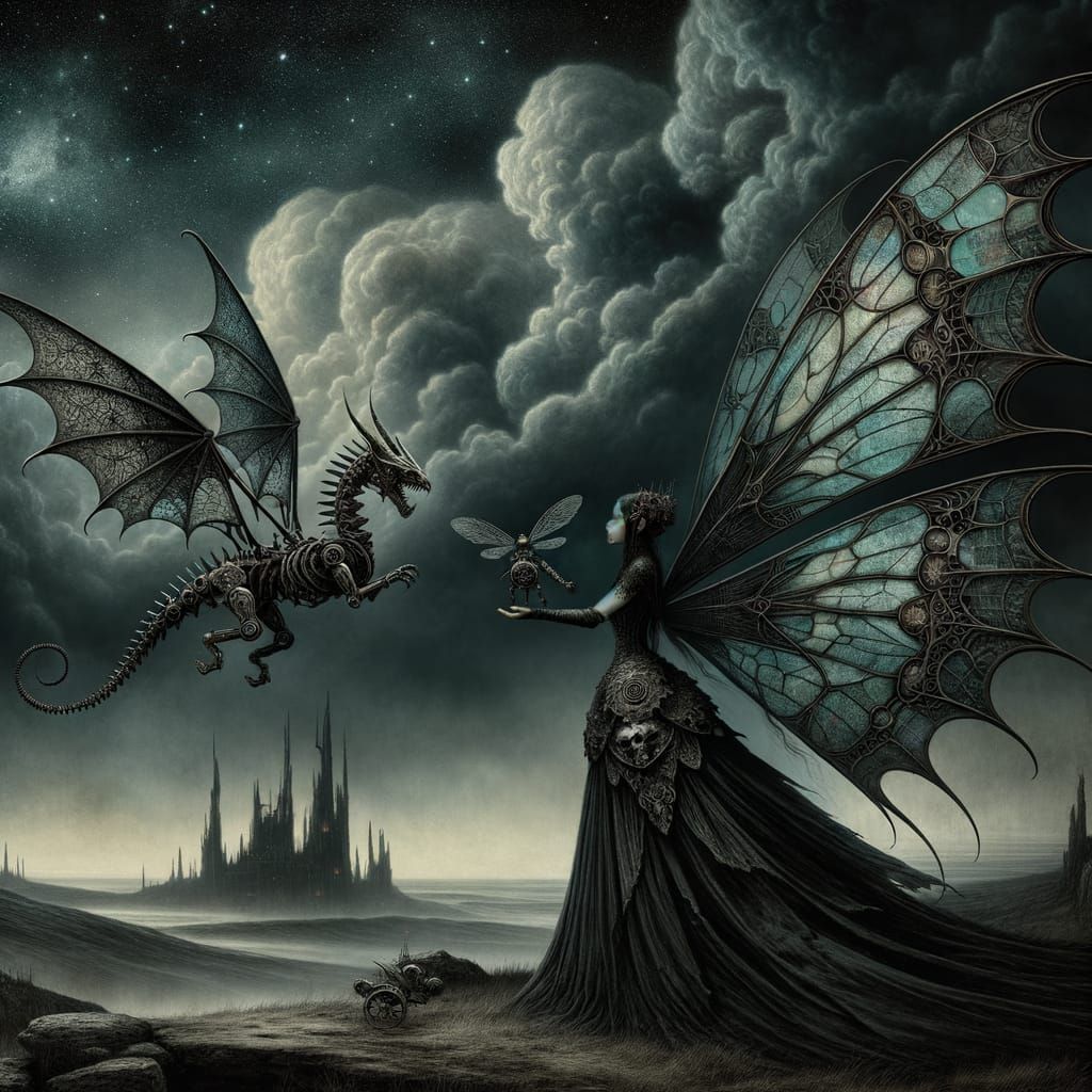 Easily generate your own gothic fairy and mechanical dragon art with our free AI image generator. Unleash your creativity!