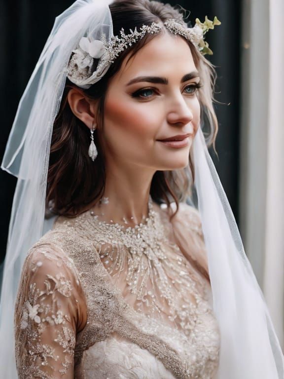 This image depicts a beautiful wedding scene, featuring characters inspired by fairies and fantasy elves. The realistic lace details add a touch of intricate beauty to the composition.