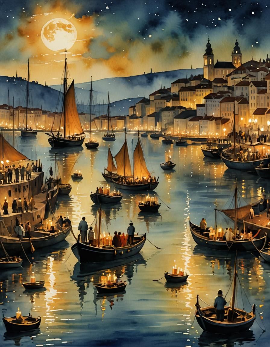Create your own stunning scenes of candlelit boats on the Tagus river with our free AI image generator.