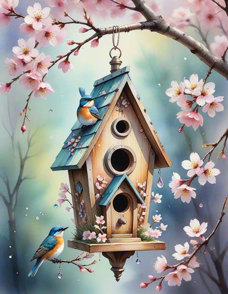 Create your own unique watercolor birdhouse art with our free AI image generator. It's fun and easy!