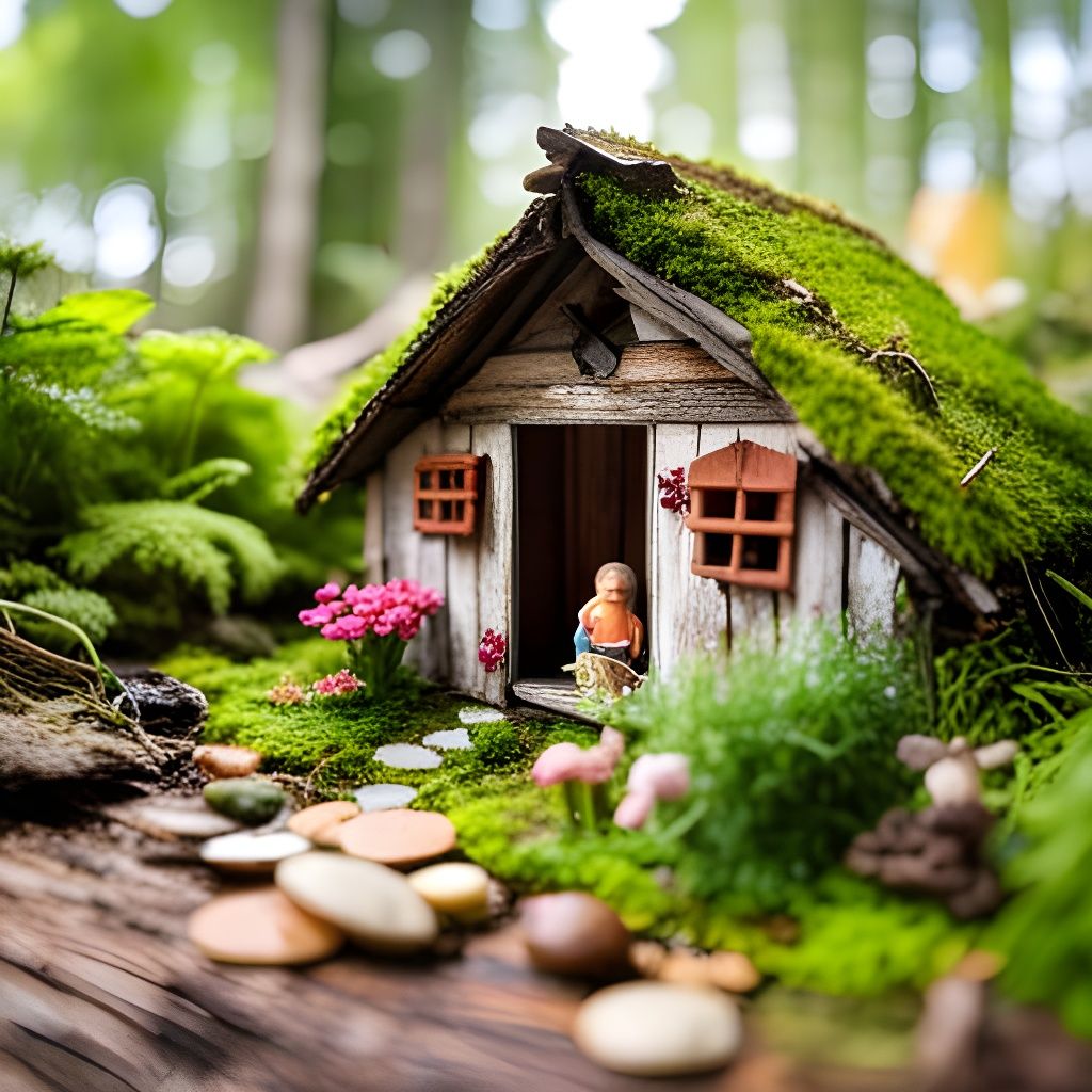 miniature dolls in an abandoned miniature village, mushrooms, moss, flowers, intricate beauty of miniature scenes, the tiny world of a dollhouse, abandoned miniature village overgrown with flowers, wonder and magic, miniature spaces, artworks, detailed, imaginative, visually stunning by gustave doré, ...