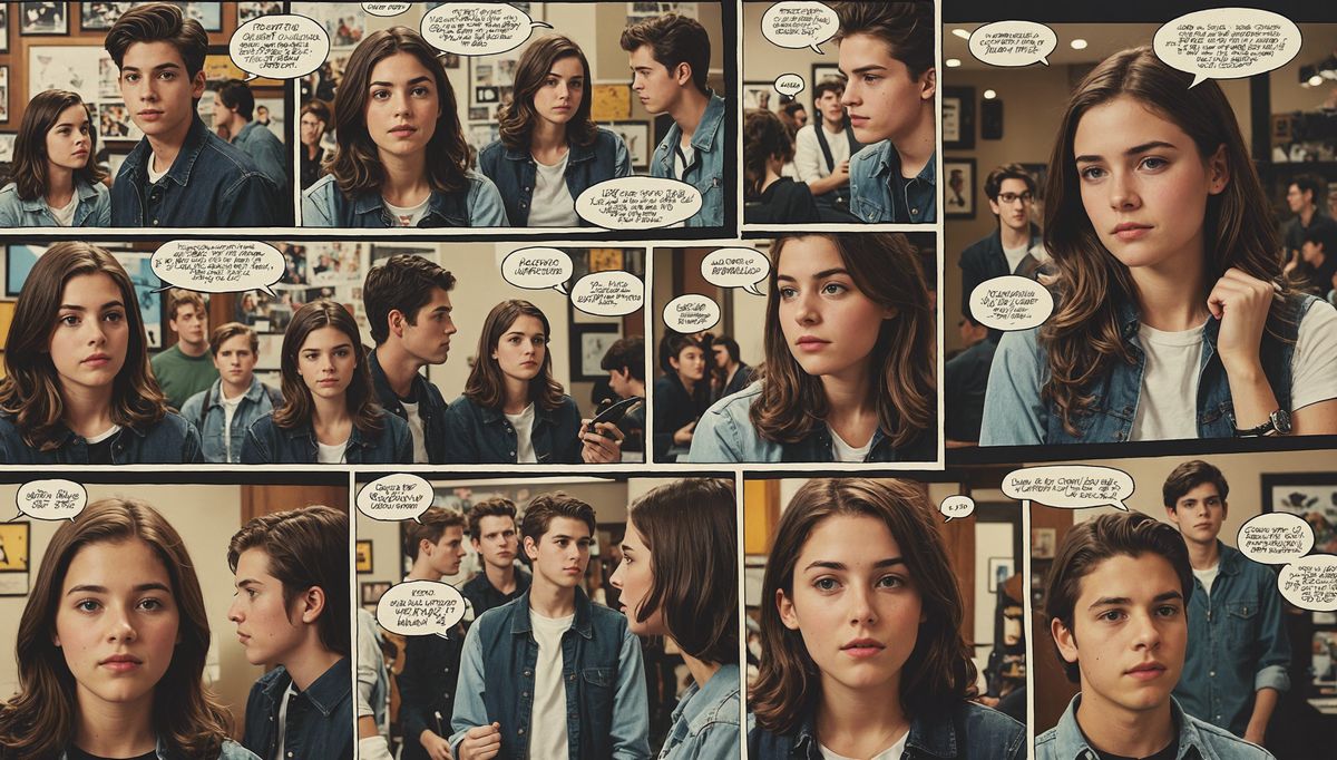 Easily create your own teenage comic strips with our free AI image generator, perfect for telling stories of love, friendship, and high school life.