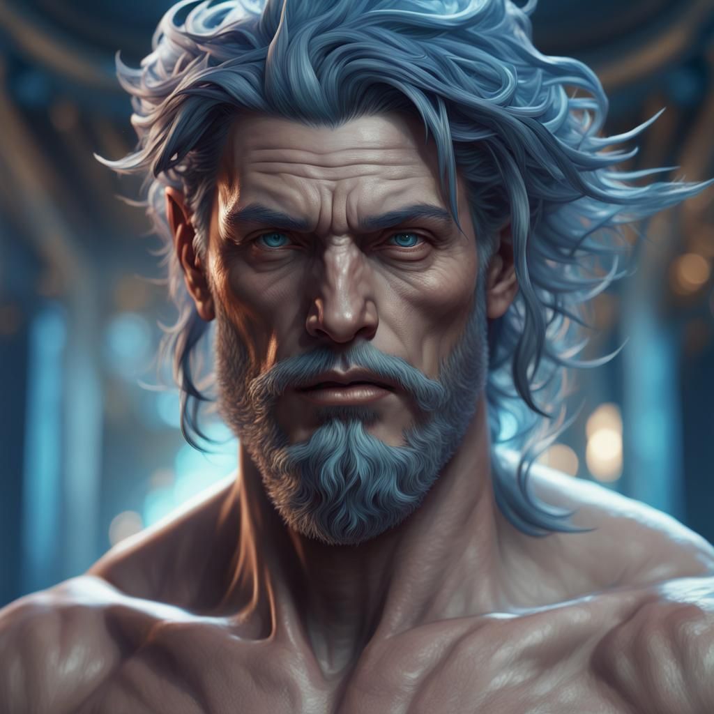 Human male, blue tint skin, gills, 8k resolution art by Greg Rutkowski, Artgerm, WLOP, Alphonse Mucha dynamic led lighting hyperdetailed trending on Artstation triadic colors Unreal Engine 5 digital art