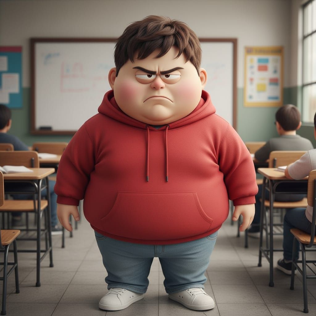 This image depicts a realistic, high-quality photo of a Brazilian teenager with a mischievous expression, inspired by a popular cartoon character. The setting is a typical Brazilian classroom with natural lighting.
