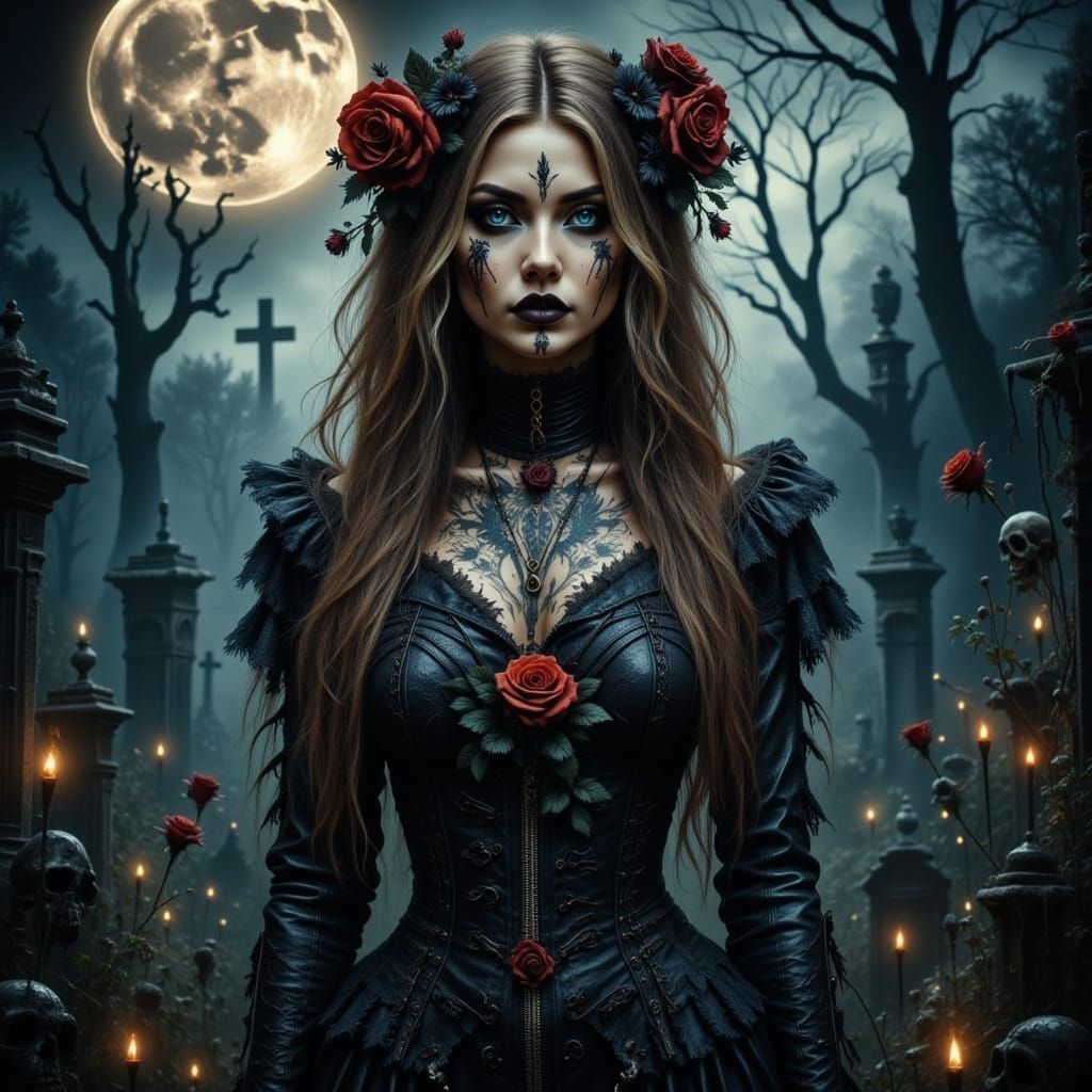 Generate your own Gothic women in cemeteries. Easy, free, and flexible AI image creation.