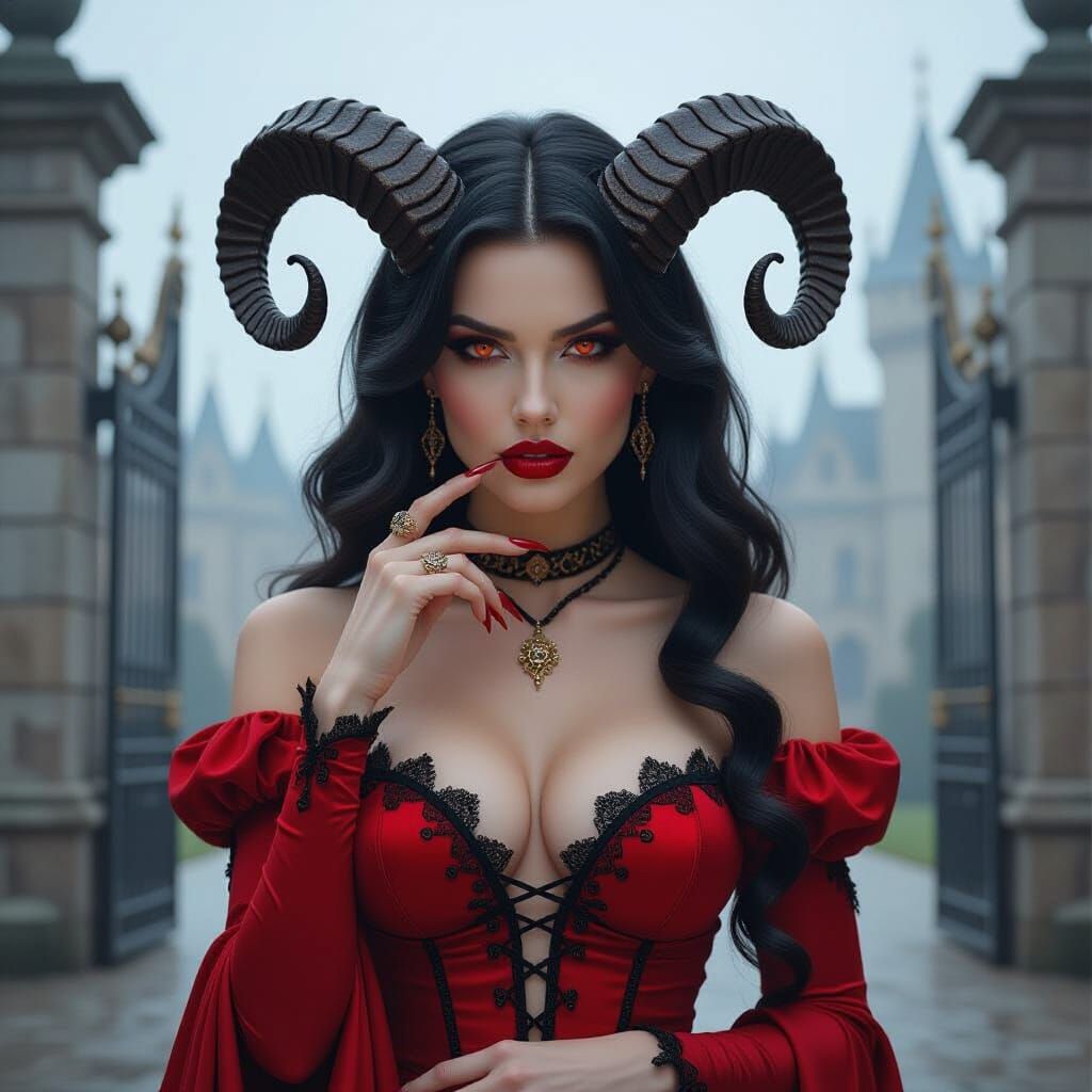Easily generate stunning images of demon women with horns and alluring lips. Free and simple AI art creation.