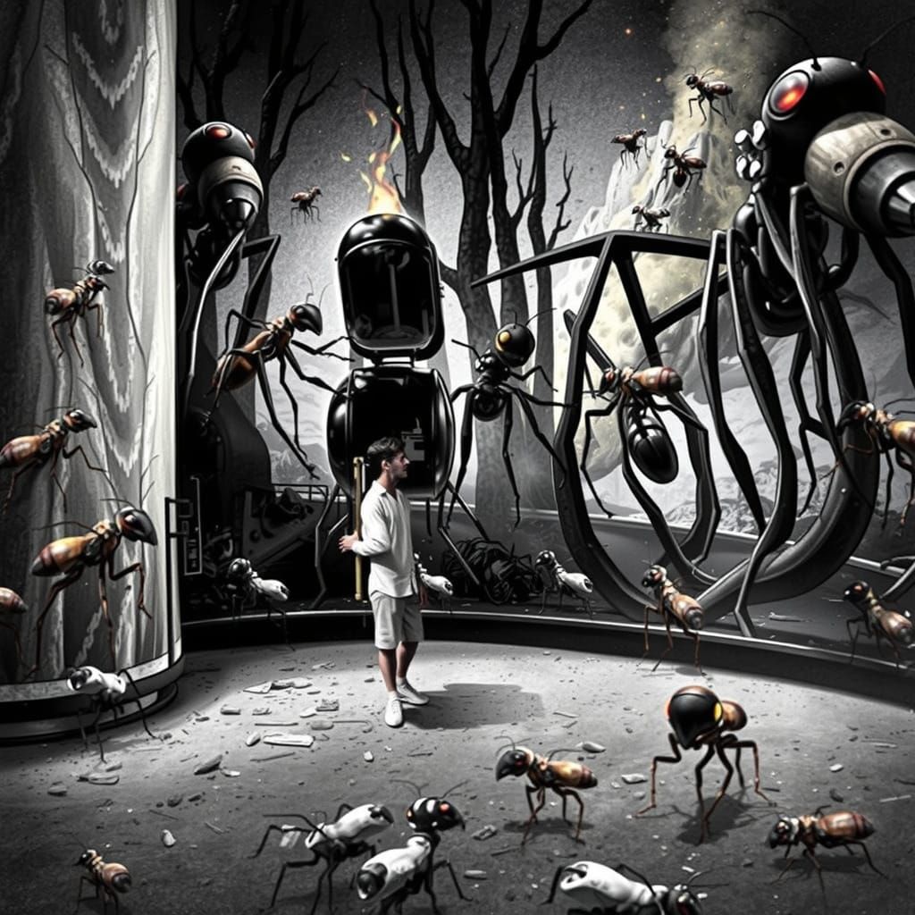 Generate your own unique images of giant ants delivering coffee, engulfed in smoke. Free and easy to use!