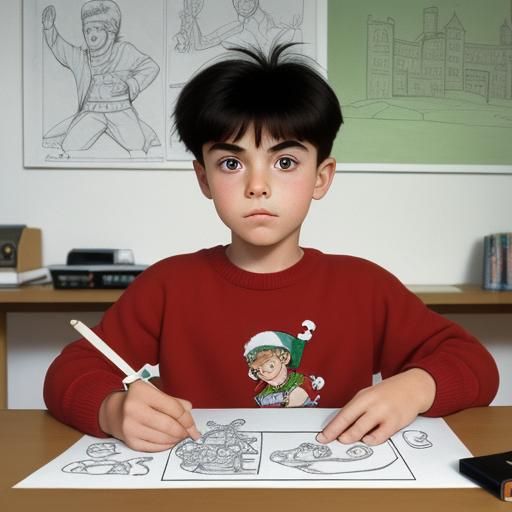 โจStep into 1986! Witness a hyperrealistic image of a kid sketching a Ninja, capturing the spirit of the era. ๐จ๐ #Nostalgia #Art #1986 #ChristmasJumper๐จ๐