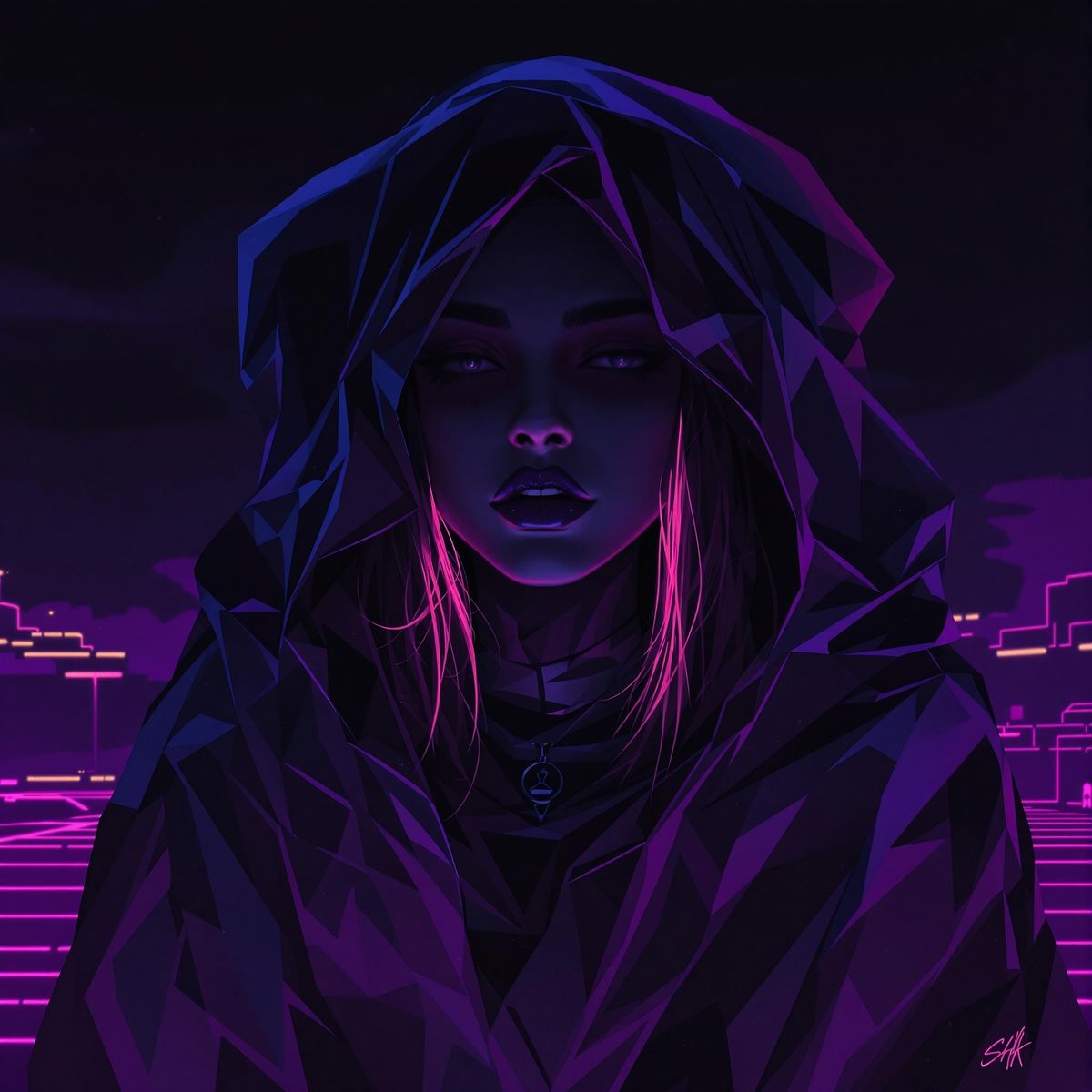 This image shows a woman's face obscured in shadow. The artistic lighting creates a dramatic and mysterious portrait.