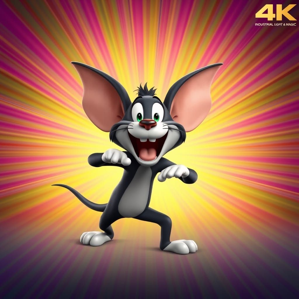 This image showcases a vibrant, cinematic concept art piece of Tom Thomb in 4K resolution, featuring bright colors and a radial gradient background, created using 3D digital art techniques.