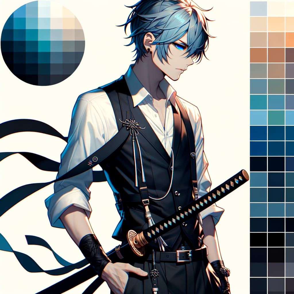 Generate your own anime characters with blue hair and katanas easily and for free using our AI image generator.