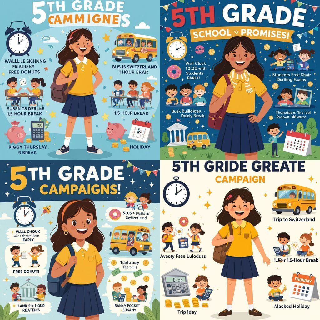 Design your own vibrant, colorful campaign posters for 5th grade with our free and easy AI image generator.